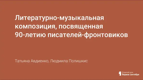 Литературно-музыкальная композиция в рамках Года культуры России посвящена тройному 90-летнему юбилею писателей-фронтовиков: Б.Ш. Окуджавы (9 мая), Ю.В. Друниной (10 мая), Б.Л. Васильева (21 мая). Читаются стихи и исполняются песни на стихи этих авторов.