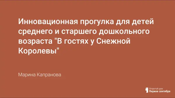 Урок представлен в форме инновационной прогулки, сочетающей в себе такие элементы организованной образовательной деятельности как «Здоровье», «Коммуникация», «Чтение художественной литературы», «Физическая культура», «Труд». Предварительно учащиеся знакомятся со сказкой «Снежная королева» Г.Х. Андерсена (чтение и пересказ некоторых частей), выполняют физические упражнения, разучивают подвижные игры.