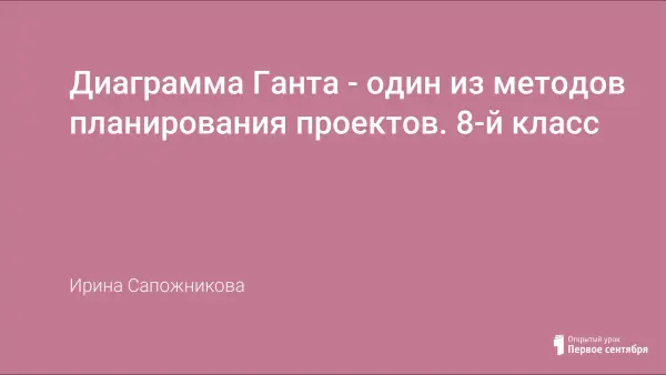 Представление табличных данных в графической форме часто используется на практике. На данном уроке рассматривается построение Диаграммы Ганта. Диаграмма Ганта - это популярный тип столбчатых диаграмм (гистограмм), который используется для иллюстрации плана, графика работ по какому-либо проекту. На уроке отрабатываются умения и навыки учащихся при работе с деловой графикой, развивается мышление, познавательные и исследовательские способности.