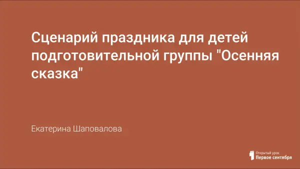 Представленный сценарий осеннего праздника может быть полезен музыкальным руководителям, воспитателям, родителям. Он разработан с учётом тематизма, определенного ФГОС. Это отчет, показывающий родителям, гостям то, чему дети научились за время пребывания в детском саду: умение слаженно и выразительно петь, читать стихи, ритмично и пластично двигаться.