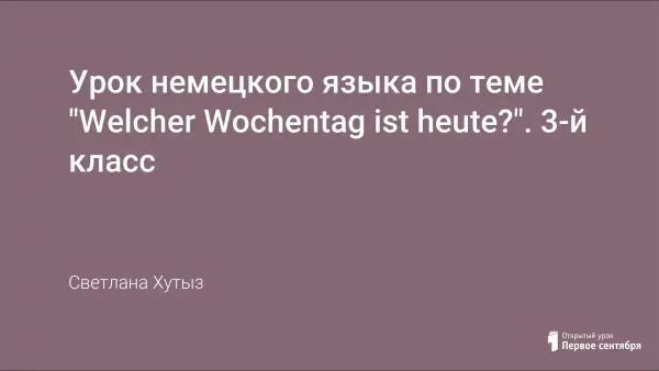Разработка открытого урока по немецкому языку в 3-м классе, имеющего цель – активизировать лексический материал, развивать навыки и умения устной речи. На уроке тренируется запоминание дней недели. Используются различные игровые моменты, что помогает вовлечь в учебный процесс даже «слабого» ученика, так как в игре дети могут проявить не только знания, но и находчивость, и сообразительность.