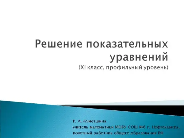 Цель урока: актуализация опорных знаний при решении показательных уравнений; обобщение знаний и способов решения: контроль и самоконтроль знаний, умений и навыков; проверка усвоения темы на обязательном уровне; продолжение обучения работе с тестовыми заданиями.