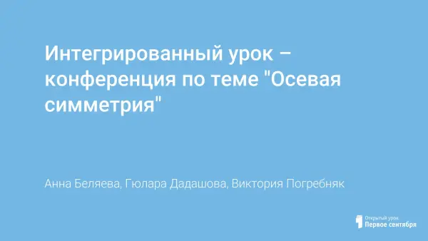 Интегрированный урок-конференция может быть проведен в рамках недели математики и информатики в 6-х классах и является пропедевтикой изучения темы «Симметрия» в старших классах. На уроке учащиеся проводят исследовательские работы по изучению явления «Симметрия», формулируют понятие осевой симметрии и учатся видеть ее в природе, архитектуре, скульптуре, литературе.