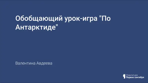 Урок способствует закреплению знаний о материке "Антарктида", развивается теоретическое творческое мышление. Интегрируются знания о географическом положении, истории открытия и исследования, о рельефе, климате, ледниковом покрове, растительном и животном мире материка.