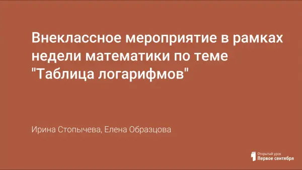 Внеклассное мероприятие в рамках недели математики по теме "Таблица логарифмов"