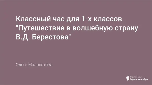 Цель: расширить читательский кругозор учащихся, знания учащихся о творчестве В.Д. Берестова, обогатить словарный запас учащихся; развивать речь, творческое воображение, прививать интерес и любовь к книге.