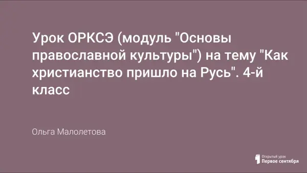 Урок ОРКСЭ в 4-м классе, на котором даётся представление о значимости Крещения для нашего Отечества, принятия православия как этапа, с которого началось качественно иное развитие личности человека, нашей государственности и культуры.
