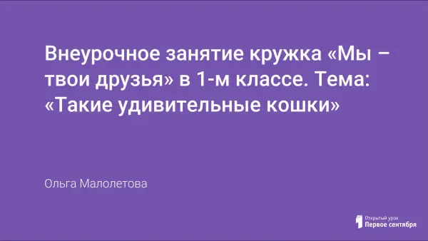 Урок продолжает разговор о наших любимых питомцах – кошках.