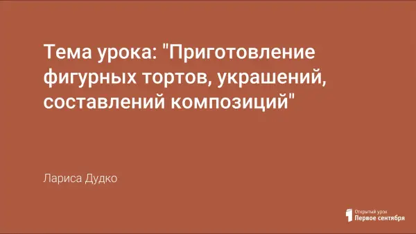Цели занятия - закрепить профессиональные умения по приготовлению полуфабрикатов для приготовления сложных мучных кондитерских изделий и праздничных тортов; способствовать формированию ПК. Организовывать и проводить приготовление сложных мучных кондитерских изделий и праздничных тортов. Организовывать и проводить приготовление сложных отделочных полуфабрикатов, использовать их в оформлении.