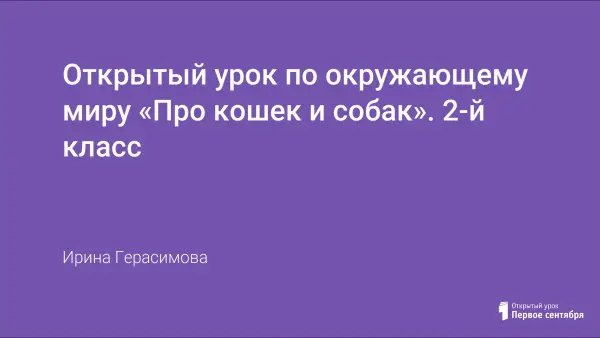 Разработка предназначена для проведения урока по окружающему миру во 2-м классе. В ходе урока ученики узнают о породах кошек и собак, научатся различать изученные породы. Развивается воображение, мышление, культура общения. Воспитывается любовь к домашним любимцам, учащиеся будут учиться ответственному отношению к домашним питомцам.