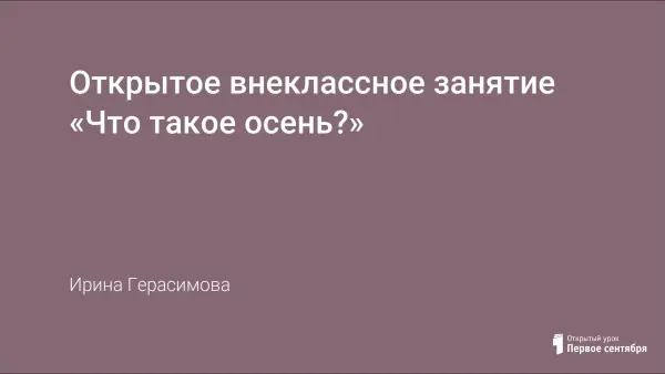 Разработка предназначена для проведения внеклассного занятия. В ходе занятия дети закрепят знания о приметах осени, об осенних месяцах, о поведении животных осенью, о сборе урожая. Пробуждается интерес к занятию через игровую деятельность, слушание стихотворений. Развивается воображение, мышление, культура общения. Воспитывается уважительное отношение к природе.