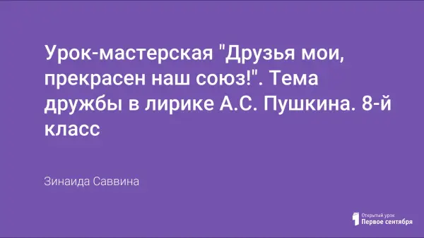 Урок-мастерская "Друзья мои, прекрасен наш союз!". Тема дружбы в лирике А.С. Пушкина. 8-й класс