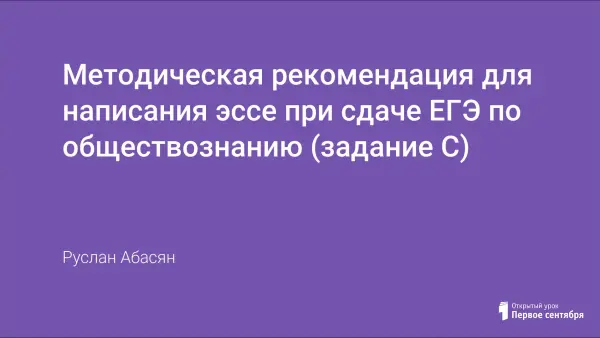 В статье описывается методика написания эссе по обществознанию. Главной характеристикой работы является тот факт, что ее использование рассчитано на подготовку учащихся общеобразовательной школы, изучающих обществознание на базовом уровне. Автором определена четкая и ясная последовательность действий при выполнении заданий ЕГЭ уровня С. В качестве основы данной методической разработки использованы классические риторические приемы и основные логические законы мышления.