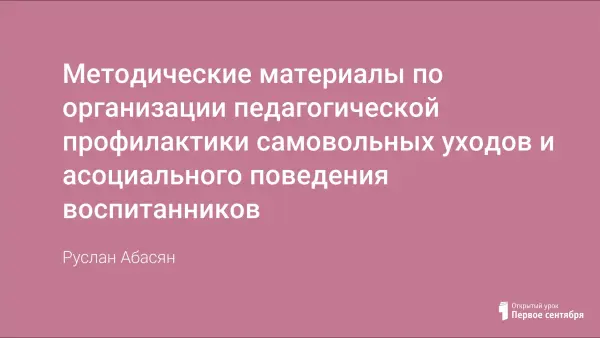 Цель занятия: социально-педагогическая профилактика самовольных уходов и асоциального поведения.