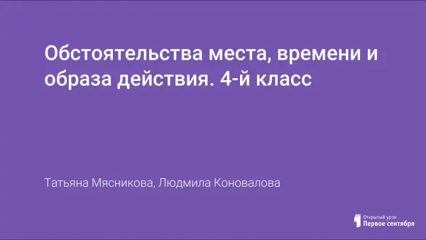 В основе урока лежит проблемное обучение. Научить учащихся различать обстоятельства времени, места и образа действия. Подвести к пониманию того, что признаки необходимы, чтобы из хаоса сделать порядок. Формировать коммуникативную компетентность в общении и сотрудничестве со сверстниками, взрослыми в процессе образовательной деятельности.