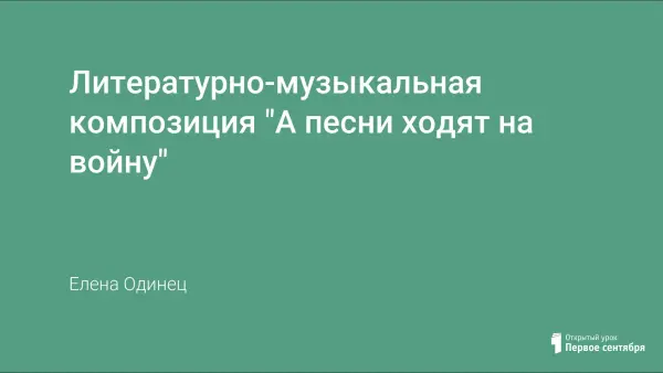 Литературно-музыкальная композиция передает силу стихов и музыки, посвященных памяти погибших на фронтах Великой Отечественной войны. Показать, как в произведениях искусства (музыке, литературе, живописи) изображена сила и мощь советского народа, победившего фашизм. Воспитание патриотических чувств у школьников.