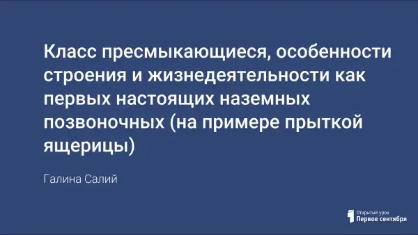 В статье раскрываются особенности строения и жизнедеятельности пресмыкающихся как первых настоящих наземных позвоночных, их происхождение.