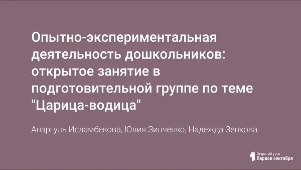 Опытно-экспериментальная деятельность дошкольников: открытое занятие в подготовительной группе по теме "Царица-водица"