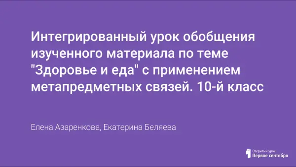Интегрированный урок обобщения изученного материала по теме "Здоровье и еда" с применением метапредметных связей. 10-й класс