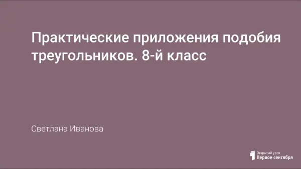 Урок обобщения и систематизации знаний учащихся. Выполняются устные упражнения по готовым чертежам, используются элементы соревнования и игры, тесты для проверки уровня усвоения материала. Практическое применение знаний по геометрии иллюстрируется решением задач по теме "Подобие".