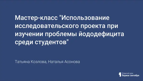 Мастер-класс "Использование исследовательского проекта при изучении проблемы йододефицита среди студентов"