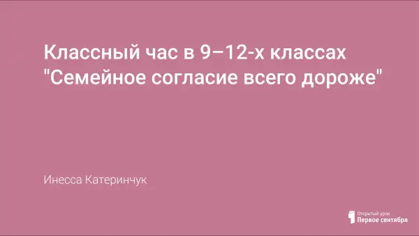 Классный час в 9–12-х классах "Семейное согласие всего дороже"