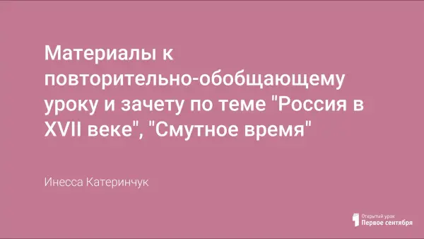 Материалы к повторительно-обобщающему уроку и зачету по теме "Россия в XVII веке", "Смутное время"