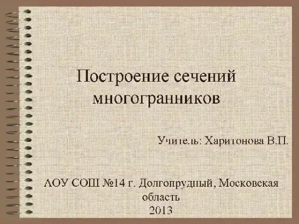 Представленную презентацию "Построение сечений многогранников" можно применить на серии уроков в 10-м классе при изучении темы "Построение сечений многогранников".