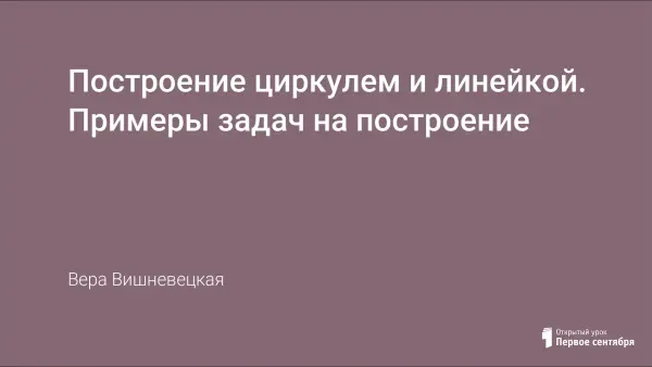 Урок формирует умения выполнять задачи на построение циркулем и линейкой без деления, во время которого учащиеся учатся находить середину отрезка; строить перпендикулярные прямые; проводить биссектрису угла; строить угол, равный данному. Урок развивает способности самостоятельно работать с учебником, работать группами, в парах, использовать компьютерные технологии при изучении темы.