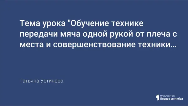 Представлена методика обучения технике передачи мячи одной рукой от плеча с места и совершенствование техники передачи мяча на месте: двумя руками от груди двумя руками с отскоком от пола.