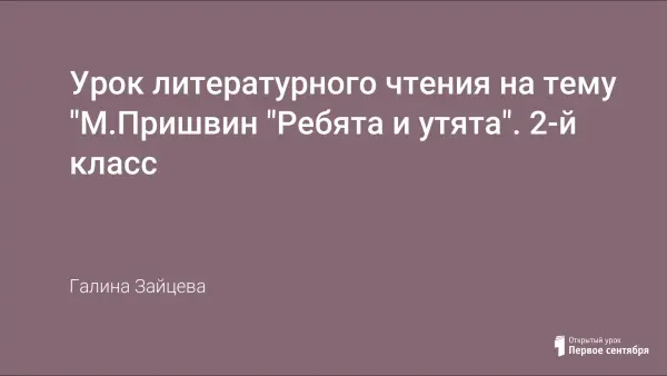 Учащиеся знакомятся с произведением М.М. Пришвина «Ребята и утята». Изучается понятие «материнская забота» при работе с художественным текстом.