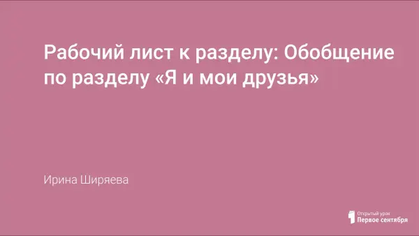 Представлен Рабочий лист к разделу: «Я и мои друзья».