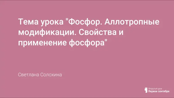 Урок направлен на стимулирование познавательного интереса школьников, развитие их интеллектуальных способностей в процессе самостоятельного приобретения химических знаний о фосфоре, его аллотропных модификациях. Учащиеся используют полученные знания для объяснения свойств и областей их применения.
