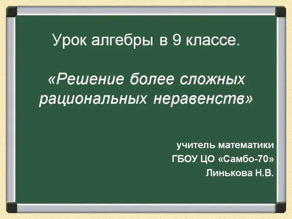 Урок обобщения в 9-м классе направлен на систематизацию знаний учащихся, совершенствование навыков решения рациональных неравенств более сложного уровня. В ходе урока приводится пример применения данного метода при решении задач с параметром, а также рассматривается пример с корнем четной кратности.
