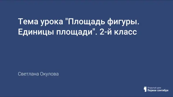 На уроке ребята познакомятся с понятием площадь фигуры, научатся находить площадь фигуры с помощью мерки – квадратного сантиметра. Презентация даст возможность наглядно увидеть способы сравнения и измерения площадей; проверить усвоение нового материала. Презентация поможет провести исследовательскую работу и прийти к выводу о необходимости единой меры площади. В неё включены упражнения по нахождению площади геометрических фигур.