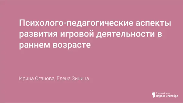 Психолого-педагогические аспекты развития игровой деятельности в раннем возрасте