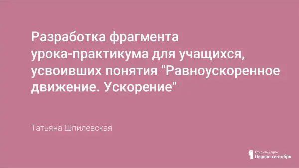 Разработка фрагмента урока-практикума для усвоения понятий: «равноускоренное движение», «ускорение» путем организации многократного выполнения учащимися деятельности, направленной на достижение цели урока.