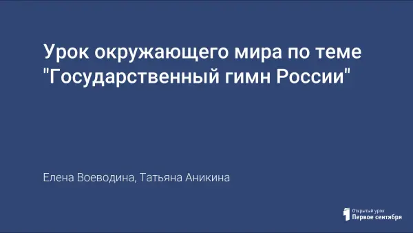 Урок получения новых знаний, на котором осуществляется знакомство учащихся с историей возникновения Государственного гимна России; расширение представления о символике государства; развитие логического мышления, творческого воображения, умения делать выводы, развитие речи.