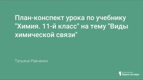 План-конспект урока по учебнику "Химия. 11-й класс" на тему "Виды химической связи"