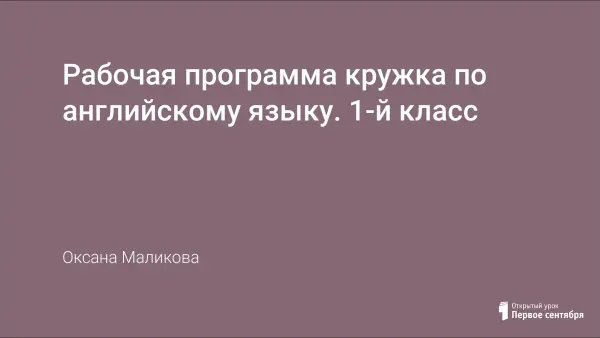 Авторская программа кружка по английскому языку предназначена для учащихся 1-го класса, она составлена со всеми необходимыми требованиями и ориентирована на интересы обучающихся.