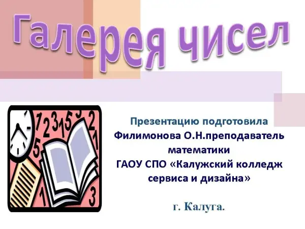 Цели мероприятия: расширение представлений учащихся о математике; показ ученикам широких возможностей математики, вызвать интерес к истории развития математики, изучаемых в ней вопросов, теорем, истории жизни и научной деятельности ученых-математиков. Познакомить детей с историей возникновения числа, с удивительным миром чисел, посетить вместе с детьми «галерею чисел».