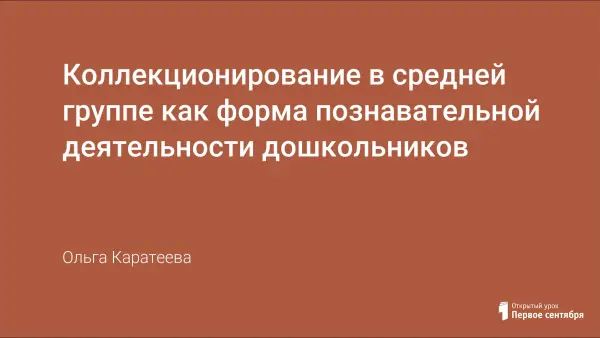 Коллекционирование имеет большие возможности для развития дошкольников, оно расширяет кругозор детей, развивает их познавательную активность. А познавательная деятельность является качественной характеристикой процесса освоения ребенком окружающего мира, объектов природы, людей, животных. Накопление знаний с помощью коллекционирования становится личным достижением ребенка и переносится в другие важные области "Коммуникация", "Социализация", "Труд".