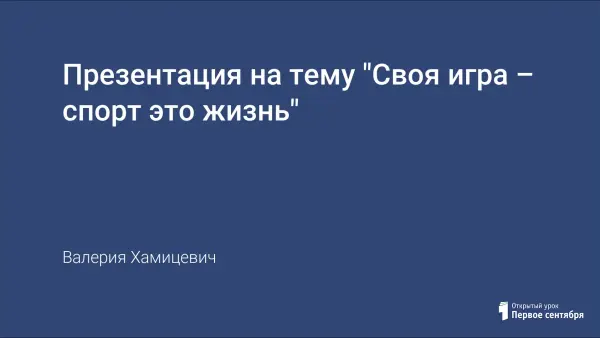 Представлена презентация на тему "Своя игра – спорт это жизнь".