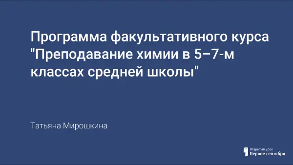 Программа факультативного курса "Преподавание химии в 5–7-м классах средней школы"