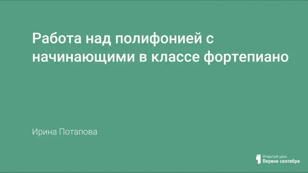 Для понимания полифонического произведения и осмысленности работы учащемуся необходимо с самого начала представлять себе его форму. Перед педагогом музыкальной школы всегда стоит серьезная задача: научить любить полифоническую музыку, понимать её, с удовольствием работать над ней. Урок знакомит с историей полифонии.