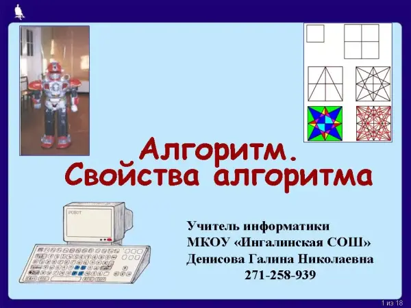 Урок призван познакомить учащихся с понятием «алгоритм», его свойствами, дать представление об основных алгоритмических структурах, научить составлять простейшие блок-схемы алгоритмов.