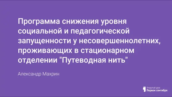 Цель программы: снижение уровня социальной и педагогической запущенности несовершеннолетних в условиях стационарного отделения.
