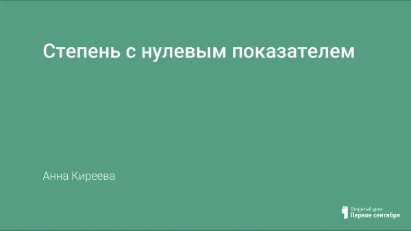 Урок является восьмым уроком по теме. На данном уроке формируются знания о степени с нулевым показателем, продолжается формирование осознанного понимания определения степени, свойств степени с натуральным показателем и умения применять их при вычислении и преобразовании выражений. К уроку составлена мультимедийная презентация, дидактический материал.