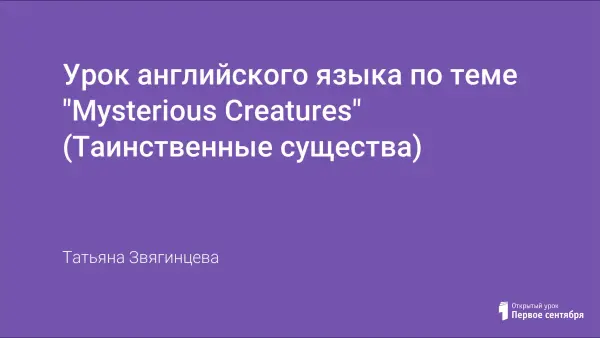 Цель урока - развитие умений изучающего чтения и навыков монологической речи по теме “Mysterious Creatures”. Используется дополнительный материал – аутентичные тексты из нескольких веб-квестов по теме “Unsolved Mysteries”, презентация, видеосюжет и задания для интерактивной доски.