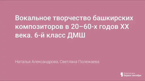 Вокальное творчество башкирских композиторов в 20–60-х годов XX века. 6-й класс ДМШ